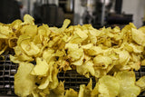 Ständige Qualitätskontrolle entlang des Herstellungsprozesses ist für unser erfahrenes Team selbstverständlich. Bevor die Premiumkartoffeln in Scheiben geschnitten werden, werden sie gebadet und sorgfältig per Hand aussortiert. Anschließend werden sie in hochwertigem Sonnenblumenöl im Kessel knusprig gebacken. Dabei wird jede Charge mit viel Feingefühl gerührt, bis der perfekte Bräunegrad erreicht ist. Gekrönt werden die gebackenen Chips mit unseren vielfältigen Würzmischungen, bevor sie verpackt werden und ihren Weg zu Chips-Liebhaber*innen finden.